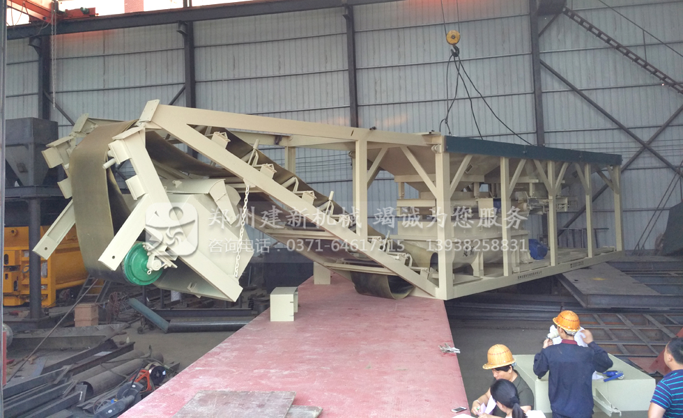 這是鄭州建新機械近年來全新設計生產的一體式穩定土拌合站設備,從整體上節約了占地面積,且縮短了骨料計量之后輸送至主機的距離,從而提高生產效率。