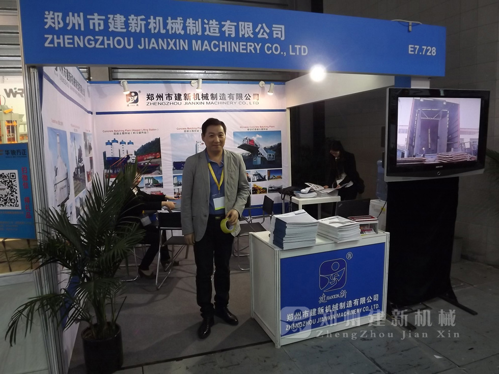 作為國內建筑機械行業里的一支跑軍,鄭州建新機械制造有限公司在2015年上海寶馬機械展銷會上,展示了建新公司大型混凝土攪拌站、穩定土拌和站全套設備,及建新JS系列雙臥軸混凝土攪拌機、PLD砂石配料機、水泥倉等單機設備。